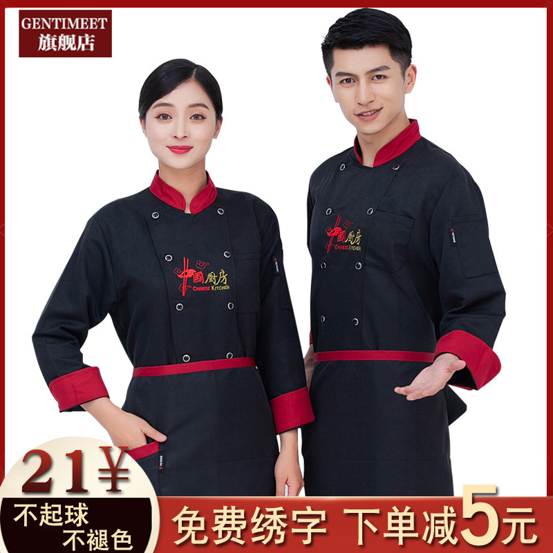厨师服长袖男酒店厨师餐饮工作服火锅店服务员工装餐厅食堂后厨服热门设计联盟服务商