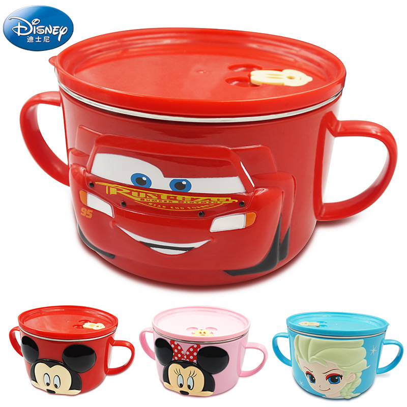迪士尼儿童餐具304钢带盖双耳碗宝宝家用3D幼儿园吃饭拆卸双层碗热门设计联盟服务商