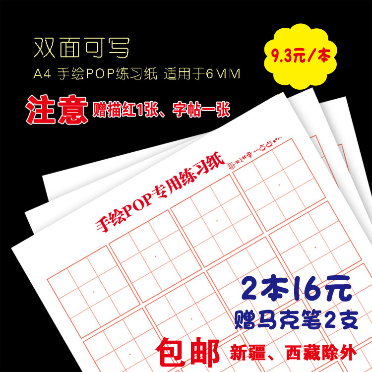 6mm九宫格A4手绘pop练习本纸海报广告练字160g铜版50张可写马克笔热门设计联盟服务商