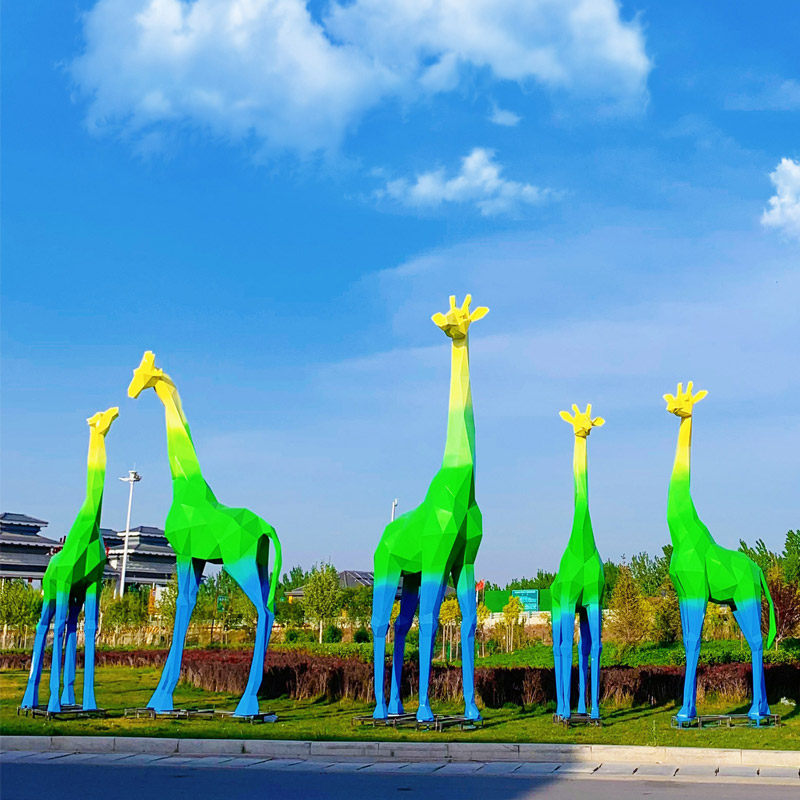不锈钢长颈鹿雕塑几何镜面镂空动物公园户外庭院大型景观摆件卡通热门设计联盟服务商
