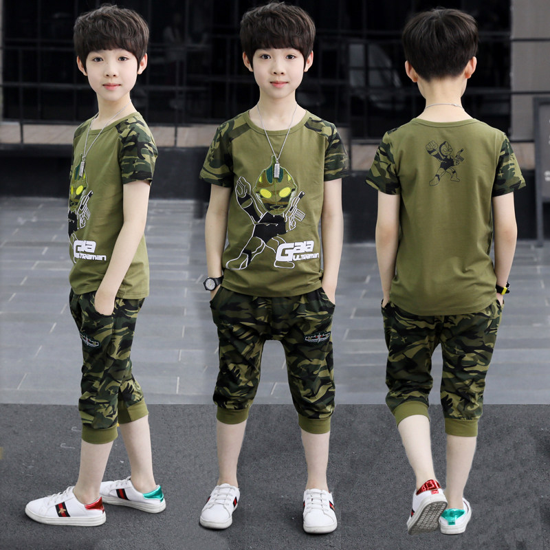 男童夏季迷彩纯棉套装2021新款童装中大童夏天特种兵工装两件套潮热门设计联盟服务商
