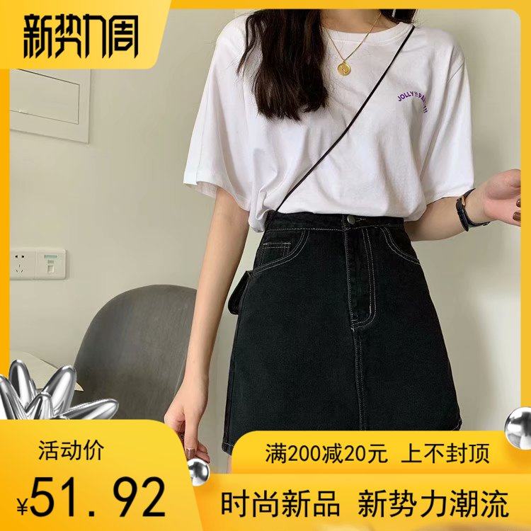 2021新梨形半身裙长蠕他布纯色牛仔裙布布穿搭女遮胯高腰字短裙热门设计联盟服务商