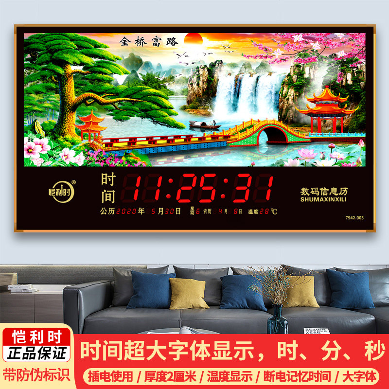 恺利时新款风景电子时钟万年历数码壁挂家用挂钟钟表客厅日历热门设计联盟服务商