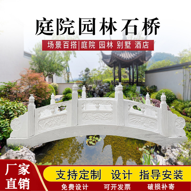 石雕石桥汉白玉小石桥公园别墅庭院花园饭店户外景观中式桥石拱桥热门设计联盟服务商