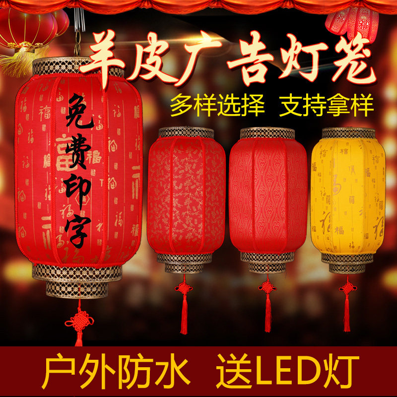 阳台户外防水晒仿古大红羊皮灯笼挂饰吊灯中国风结婚广告印字定制热门设计联盟服务商