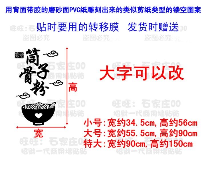 筒子骨粉三鲜粉餐厅饭店小吃店铺玻璃门贴图墙面装饰墙贴纸 898。热门设计联盟服务商