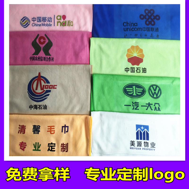毛巾方巾定制logo广告宣传赠品定做激光刻字彩印刺绣图案加油站热门设计联盟服务商