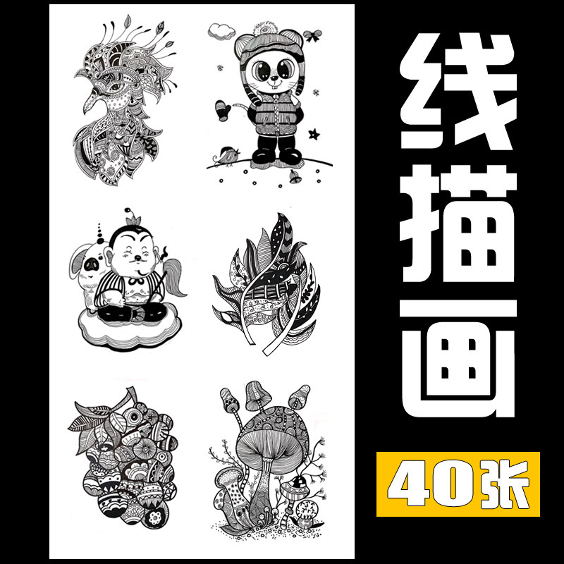少儿创意线描临摹卡片 儿童美术手绘黑白画参考范画 高清图片素材热门设计联盟服务商