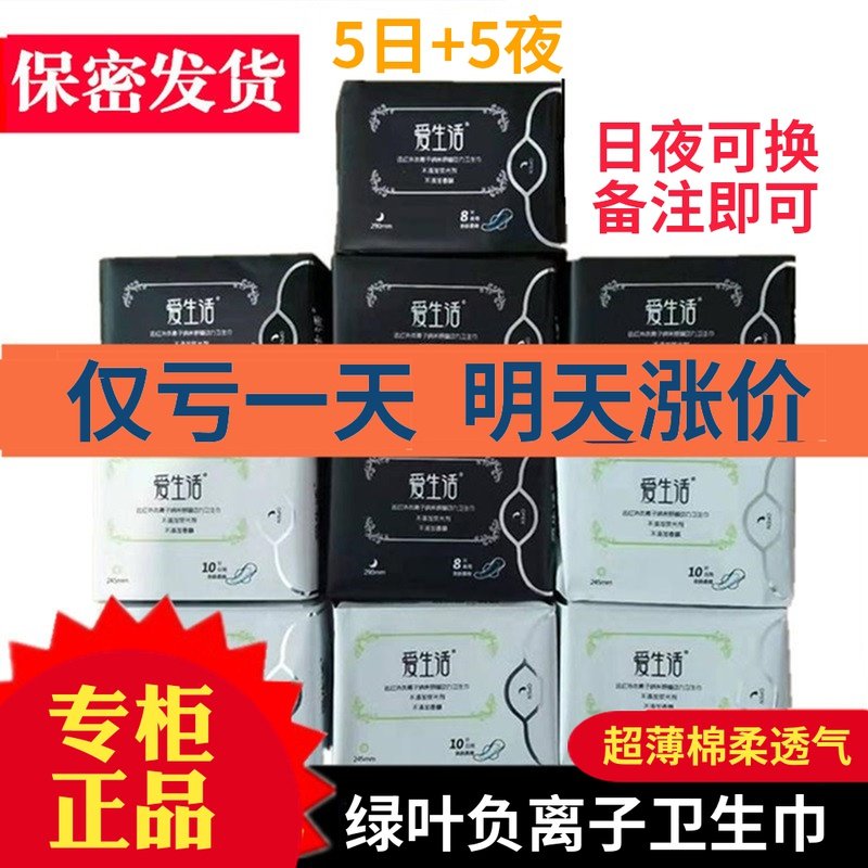 绿叶爱生活卫生巾女正品日夜用负离子超薄棉柔姨妈巾整箱10包包邮热门设计联盟服务商