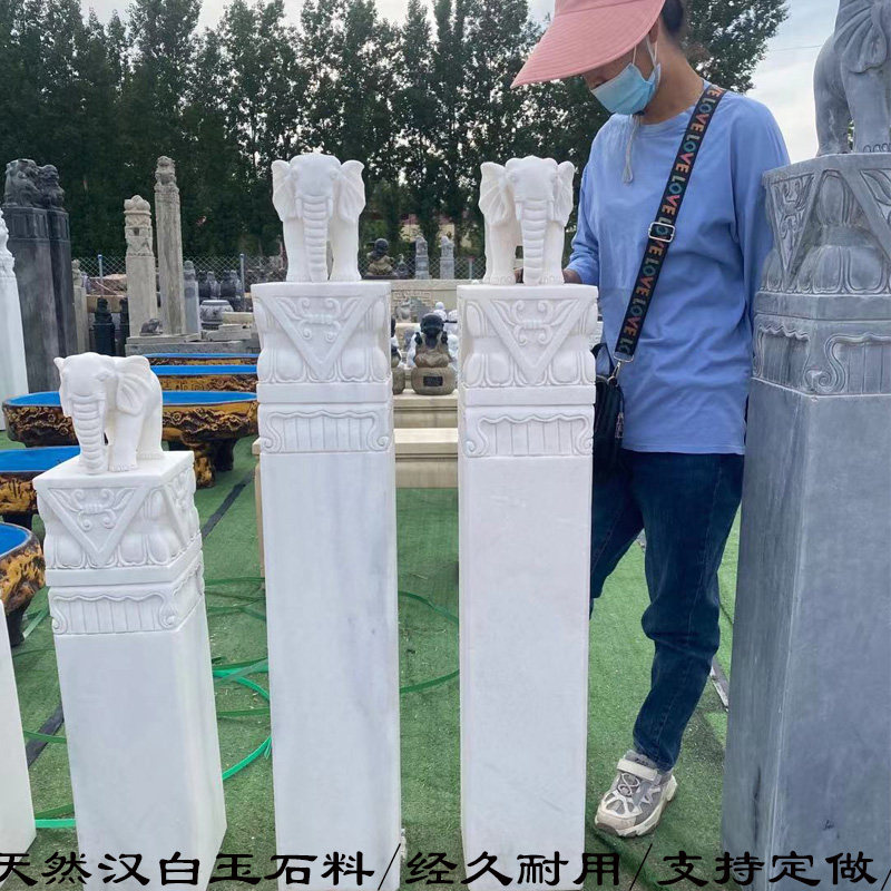 汉白玉石雕狮子象拴马桩庭院门口石柱子中式酒店会所商场装饰摆件热门设计联盟服务商