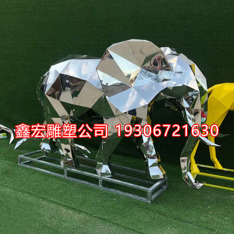 定制不锈钢镜面几何大象雕塑抽象翘鼻子喷水象商场售楼部造景小品热门设计联盟服务商