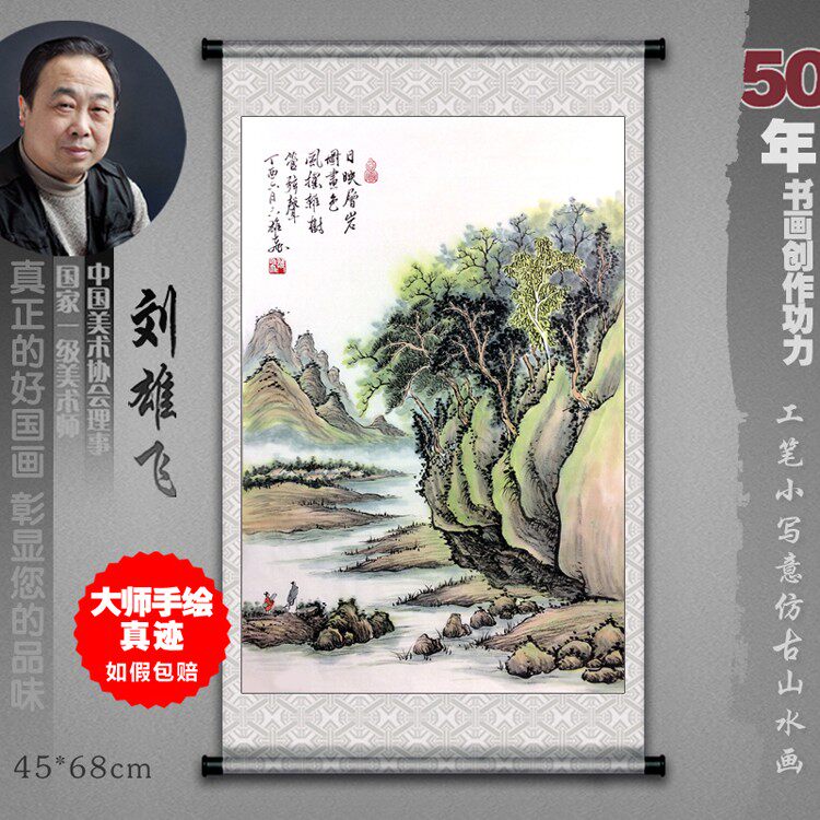 四尺三开横幅竖幅刘雄飞山水国画仿古工笔写意手绘宣纸画芯45*68热门设计联盟服务商