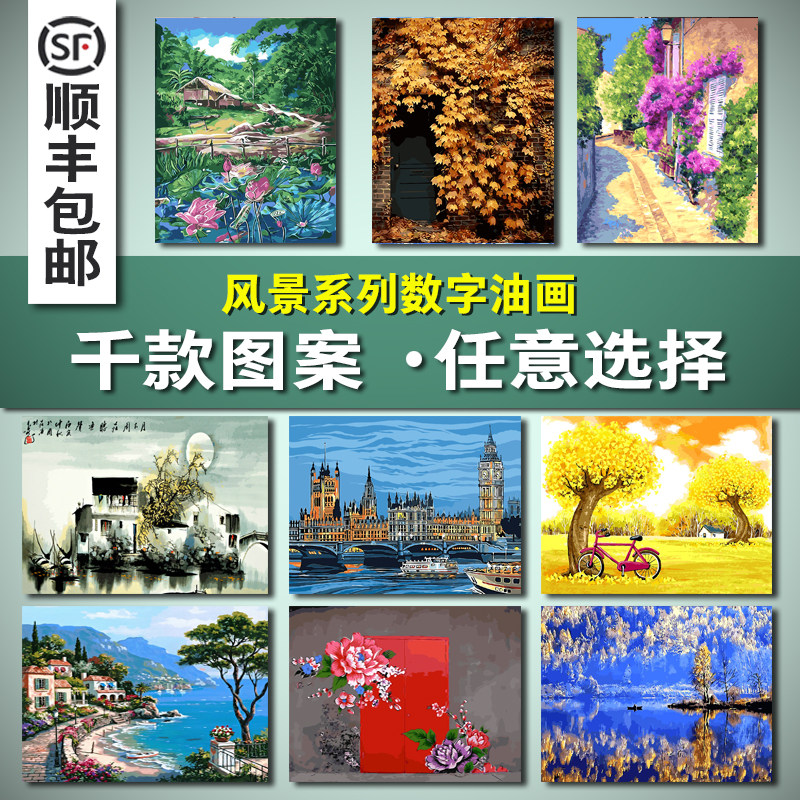 数字油画diy风景田园花卉鸟人物填色手工绘油彩数码减压装饰画热门设计联盟服务商
