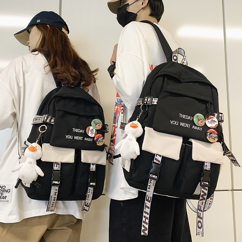 男韩版高中大学生大容量中学生潮流双肩包时尚工装潮牌背包女热门设计联盟服务商