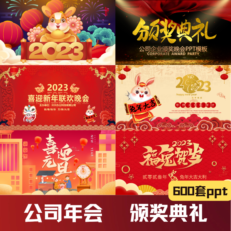 元旦年会ppt模板2023兔年主题高级大气颁奖典礼表彰会幻灯片素材热门设计联盟服务商