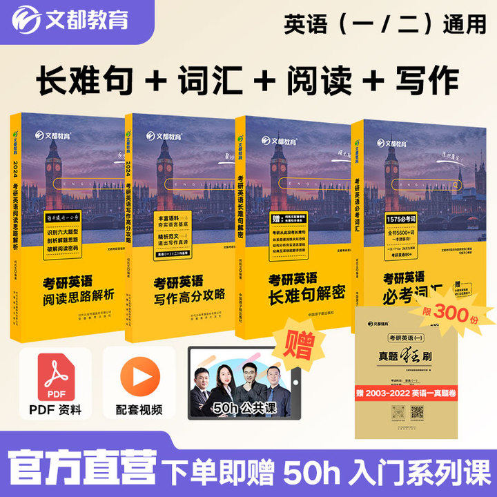 【文都教育】2024考研英语4本套装 何凯文编著 长难句解密+1575词汇+阅读思路解析+写作攻略 世纪文都 英一二通用 历年真题详解热门设计联盟服务商