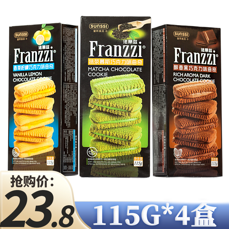 法丽兹曲奇夹心115g*4盒sunssi饼干散装抹茶慕斯零食小吃盒装热门设计联盟服务商