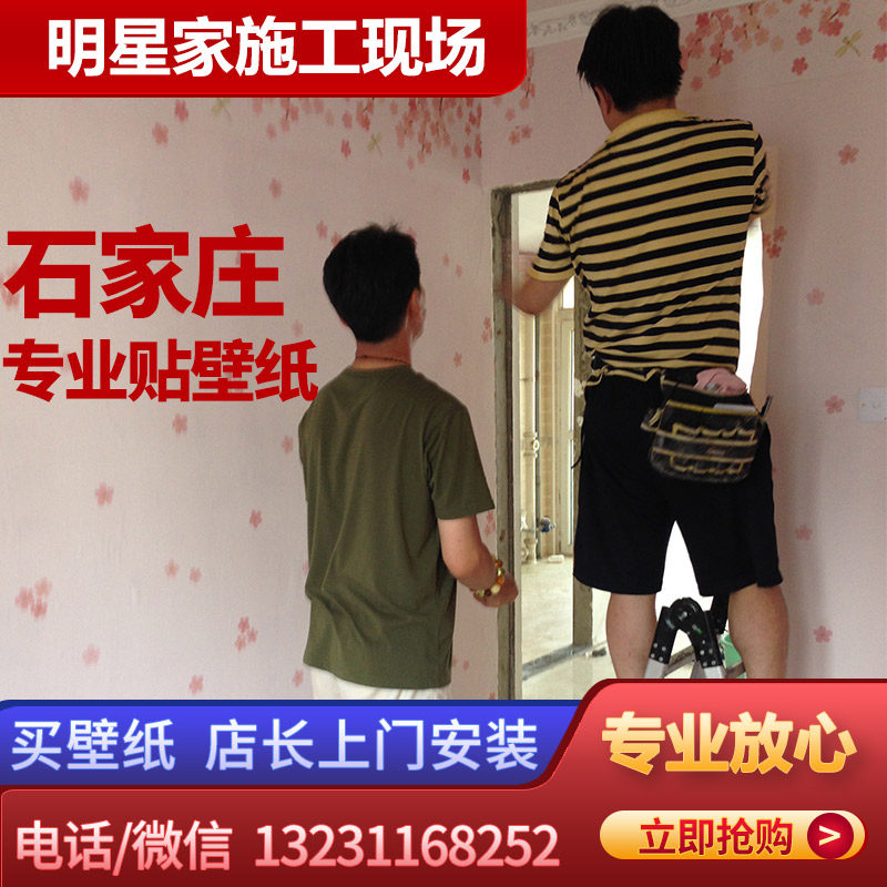 石家庄专业贴壁纸 壁纸施工 壁纸铺装壁画师傅深压纹无纺纯纸壁纸