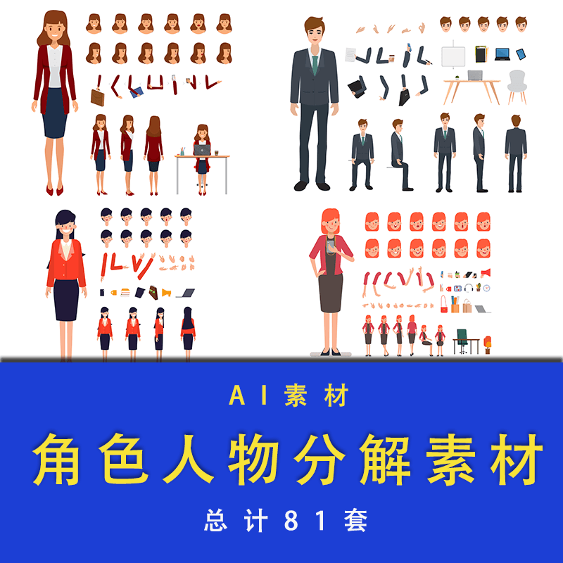 角色人物分解素材三视图男女人物ae人物素材职场人物素材卡通人物热门设计联盟服务商